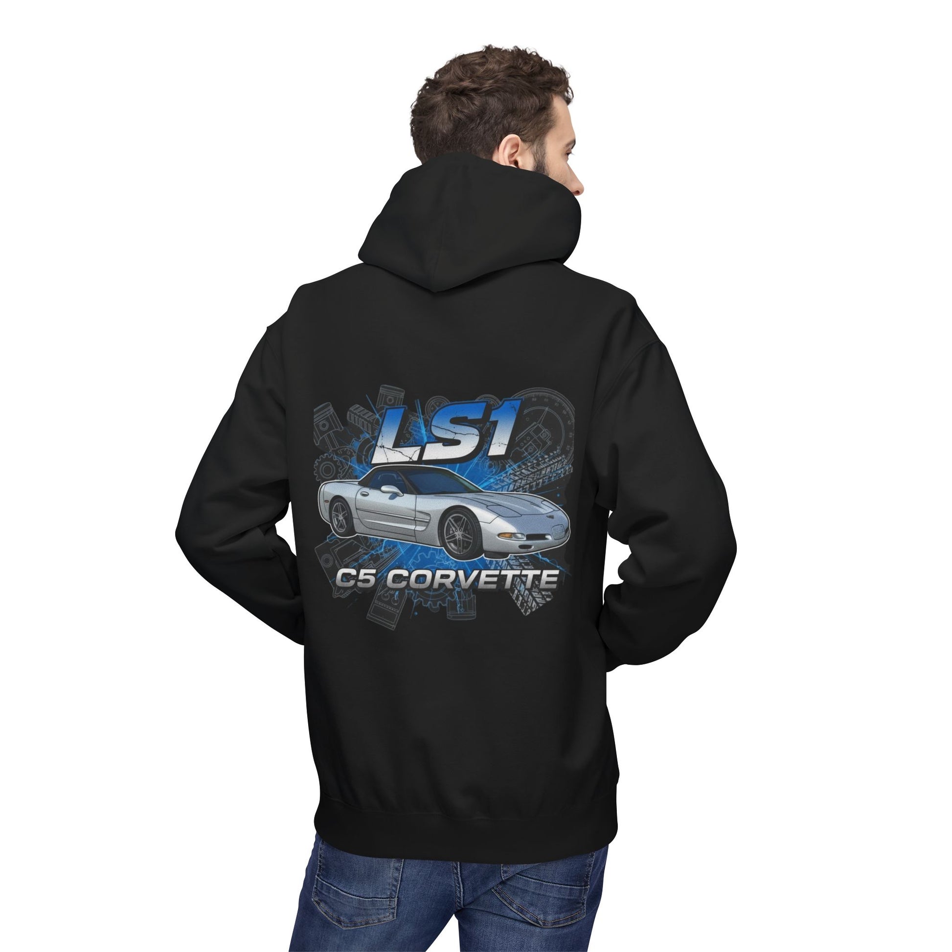 Finished with an embroidered “LS1” hit on the back, this hoodie pays tribute to the heart of the C5: the engine that started a new era of Corvette performance.